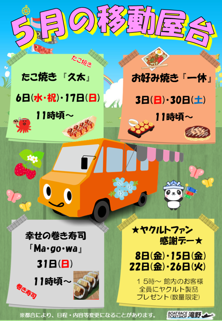 | イベント | ★ | ★ | ★ | ★ | 休 | ★ | ★ | ★ | ★ | ★ | ★ | ★ |
